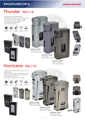 Equipped with 3 nozzles providing intense flame and an opening double punch for punching two sizes of holes in cigars.